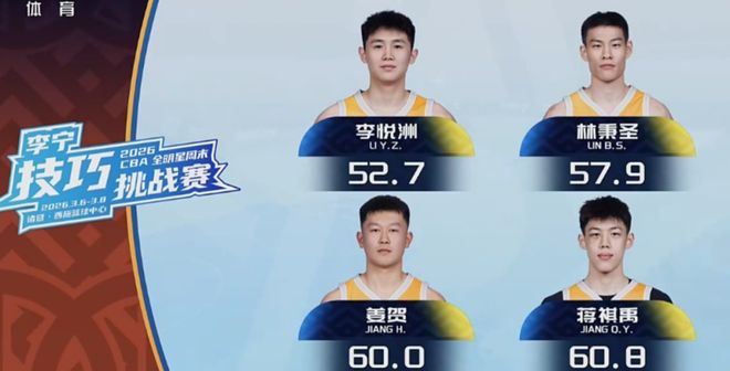 北京时间3月8日,2026年CBA全明星技巧挑战赛决赛,姜贺以59.8秒的成绩加冕新科技巧赛冠军,他以0.1秒的优势击败蒋祺禹,而预赛表现出色的李悦洲低级失误在决赛垫底。